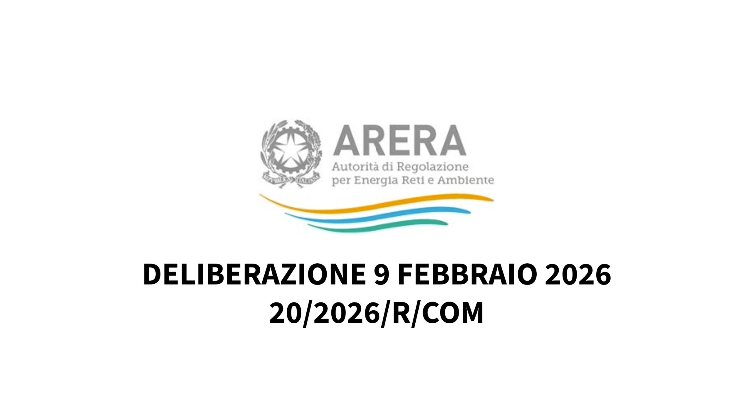 In data 9 febbraio 2026 è stata emanata la delibera Arera n. 26/2026, contenente disposizioni in materia di servizio elettrico e gas a sostegno delle popolazioni colpite dagli eventi meteorologici verificatisi a partire dal 18 gennaio 2026 nelle regioni SICILIA, SARDEGNA E CALABRIA (Comuni individuati dall’Allegato all’Ordinanza del Capo del Dipartimento della Protezione Civile n. 1180 del 30/01/2026).